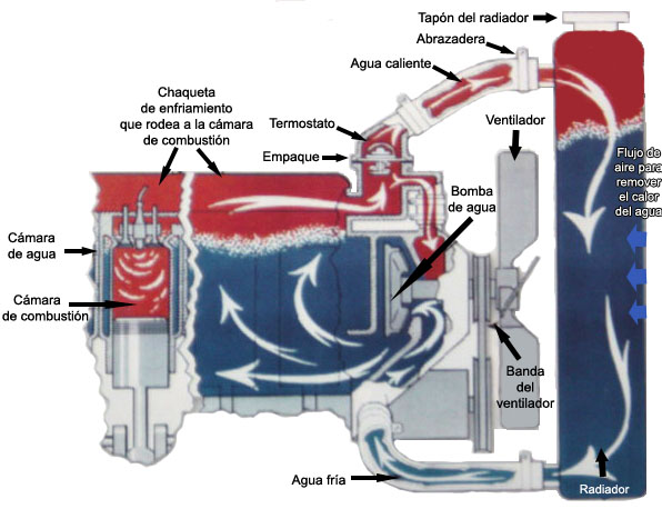 -Cuando el vehículo está en movimiento el aire del exterior actúa sobre el radiador enfriando así el líquido.